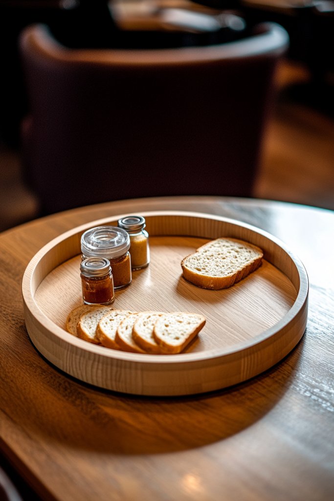 Imagine a smooth, circular wood piece with a subtle natural grain, rotating effortlessly on a sleek base. It holds an array of cheeses, fruits, or spices, turning your table into a functional art piece. When spun, it reveals everything at a glance, eliminating clutter and awkward reaching. The warm tones of the wood add a cozy, inviting vibe, perfect for both casual dinners and special occasions. Its simplicity enhances any table setting without overpowering it.