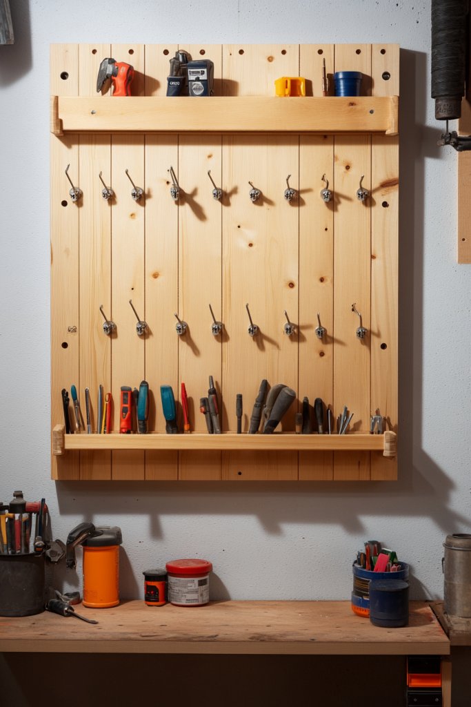 9. DIY Wooden Pegboard for Tool and Craft Storage
