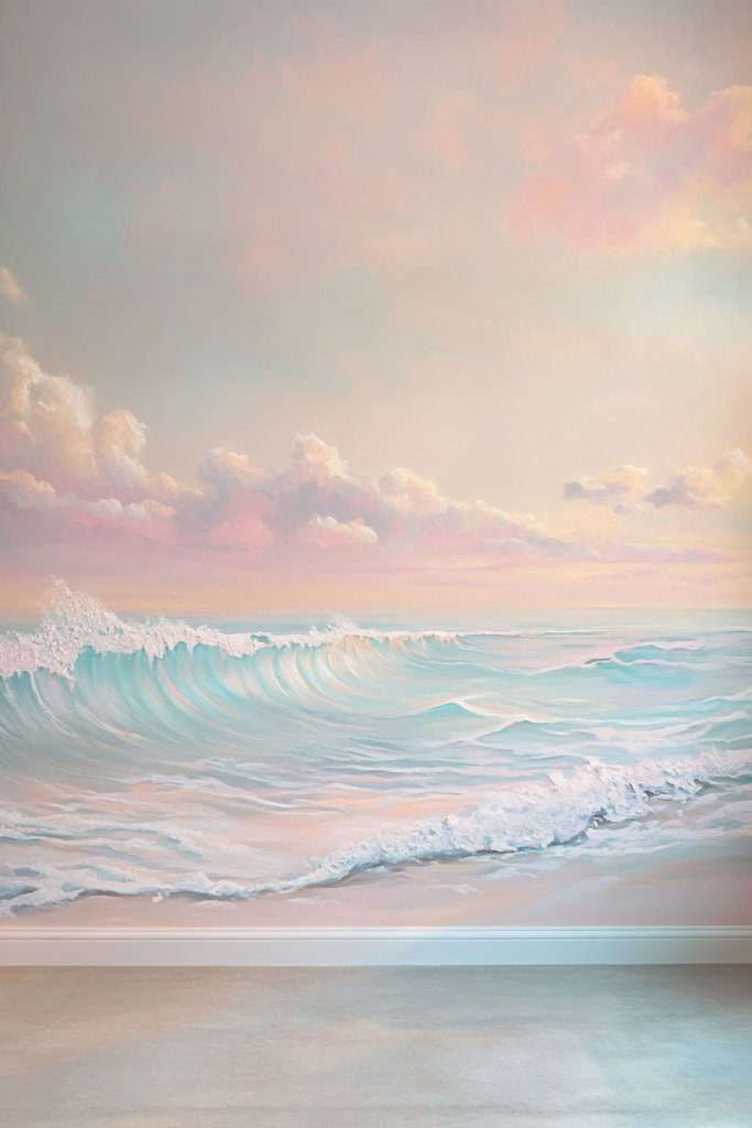 1. Serene Ocean Wall Mural with Soft Pastel Shades