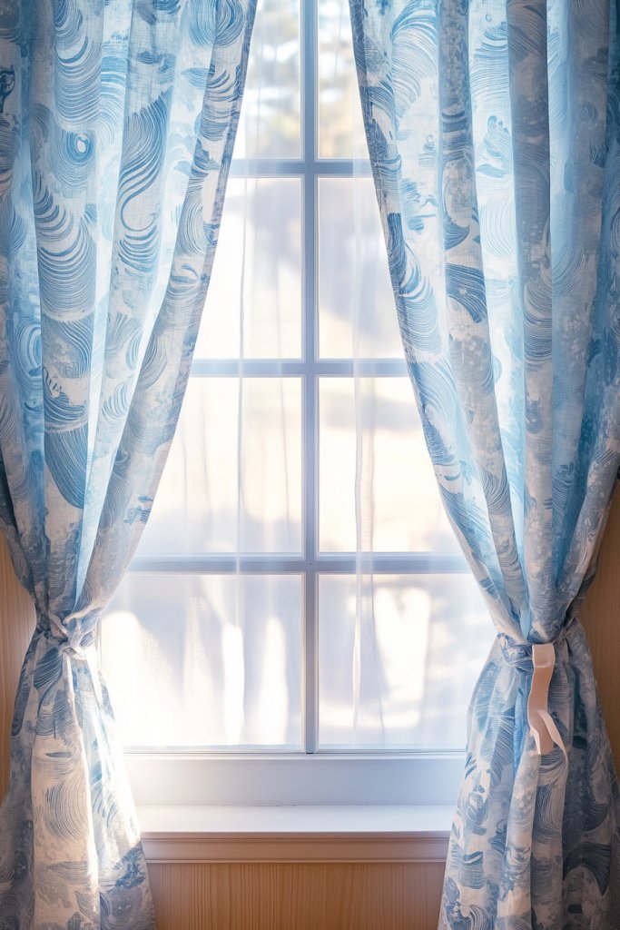 10. Light-Filtered Windows with Sea-Inspired Curtains
