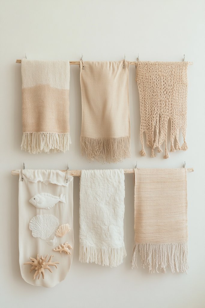 12. Soft Ocean-Themed Wall Hangings in Neutral Tones