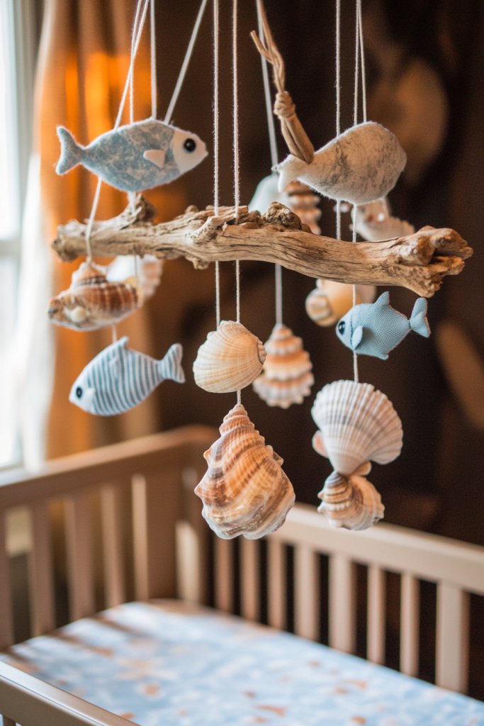 A mobile with natural elements creates a peaceful, organic ambiance that fosters sleep and curiosity. Its simplicity and elegance make it a versatile piece for any nursery. With a little effort, you craft a calming ocean scene overhead. Ready to bring nature’s serenity home?