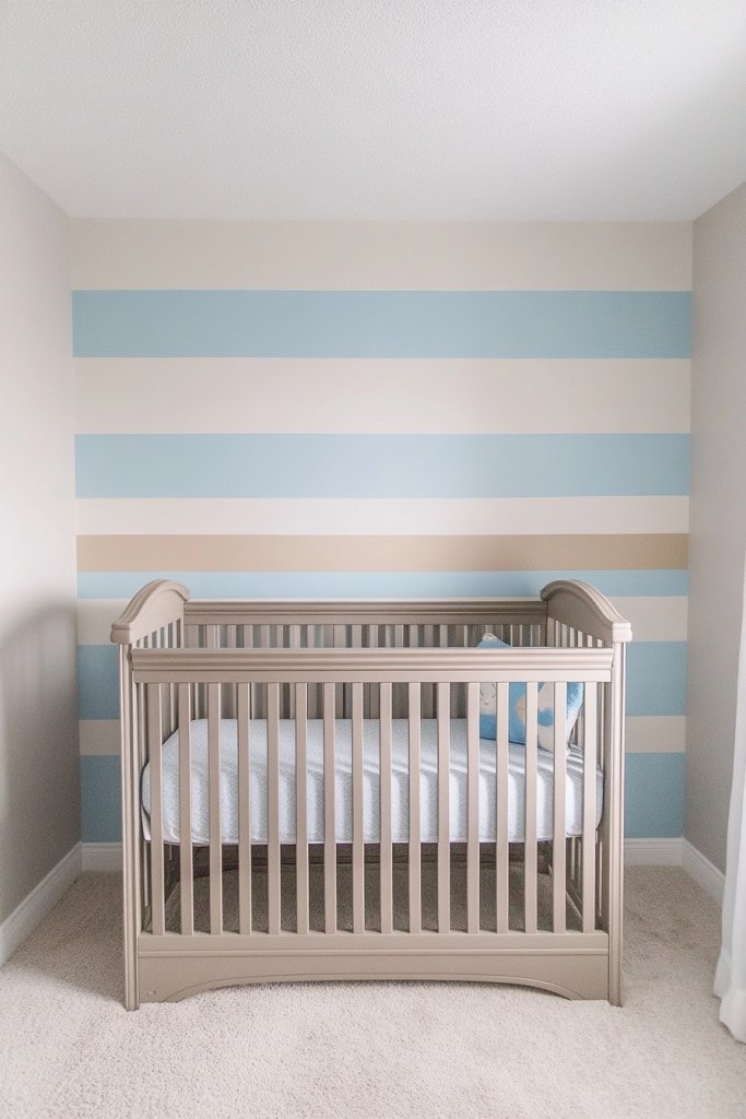 Struggling to add subtle interest to your nursery without overwhelming the senses? A nautical stripe accent wall in soft hues can do the trick. It introduces a classic maritime vibe that’s both calming and stylish. Plus, it’s an easy way to add depth without cluttering the space.