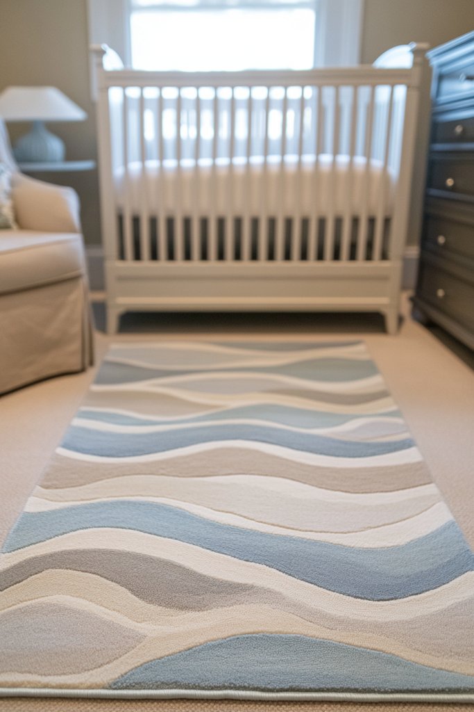Want to anchor your nursery’s ocean theme while adding warmth and comfort underfoot? A coastal-inspired rug with wave or sand dune patterns can do exactly that. It creates a cozy foundation that ties everything together. Plus, it’s a quick way to add texture and personality.